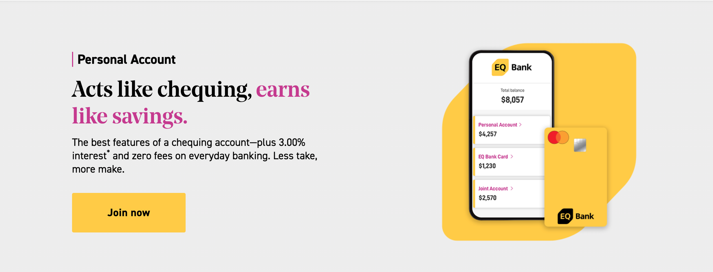 The brief: reposition EQ Bank from an account to park money to earn high interest, to an account to do everyday banking while earning more by launching an EQ Bank Card, with a 10% card adoption rate target for the customer base.